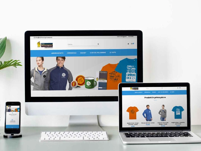 Creare un catalogo di prodotti altamente personalizzati per lo Store Ufficiale di Via Francigena, sviluppar...